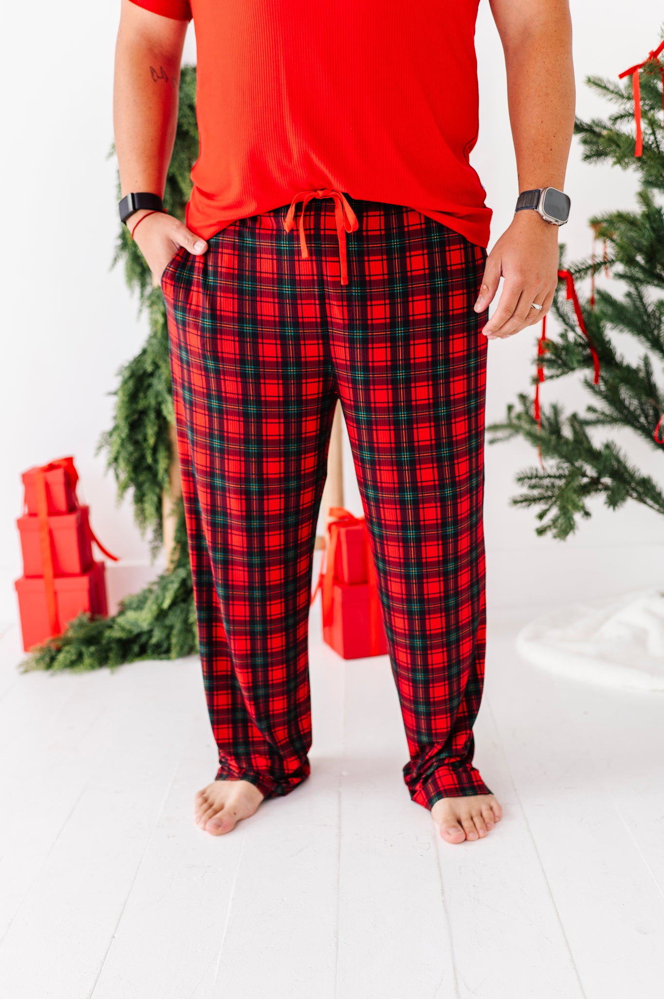 Classic Red Plaid Ribbed Men's Set